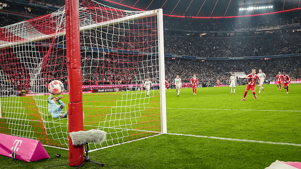 上半场补时阶段,美因茨扳平比分!威廉-博文维克传至门前,科兹洛乌斯基后点头球破门,美因茨1-1拜仁。